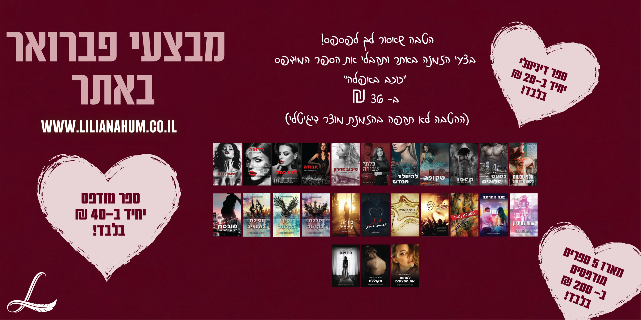 סדרת המאפיה האיטלקית: נשבעת בדם, דואט רדופה, השפעה רעה וללא פחד (הנובלה ׳השפעה רעה׳ מופרדת מהספר ׳ללא פחד׳ בפורמט הדיגיטלי בלבד! בפורמט המודפס, הנובלה מודפסת בספר ׳ללא פחד׳) אבודה, סיבוב אחרון, דואט בלתי שבירה, להיוולד מחדש, שקופה, קאפו, דואט כמעט אלוהים, דואט אלף טבעות, מובסת, נסיכת המאפיה, נסיך הקרטל ומלכת הקרטל.