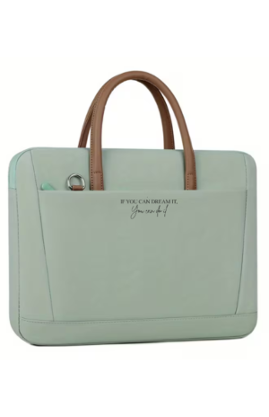 תיק מחשב נייד דגם ״מגי״ צבע פיסטוק עם כיתוב בעיצוב אישי
