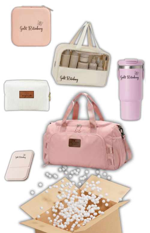 ארזנו לך את כל מה שאת צריכה כדי לצאת מהבית בשיא הסטייל, במקסימום נוחות, ועם טאץ' אישי שהוא רק שלך. בין אם את בדרך לסופ"ש מפנק, טיסה לחו"ל או לאימון כושר – המארז הזה הולך לסגור לך את כל הפינות.