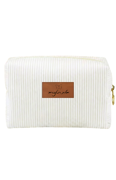 נרתיק קורדורוי דגם ״לין״ – הפיס הכי טרנדי שיש! נרתיק קורדורוי נעים ורך למגע בעיצוב מינימליסטי. מושלם לאיפור או לכל הדברים הקטנים שחשובים לך. כולל בטנה פנימית להגנה מקסימלית על התכולה. הטאץ' שלנו: פאטץ' עור בחזית עם חריטה אישית – להקדשה, שם או סמל שמרגש אותך. (מידות: 18X11X8 ס"מ)