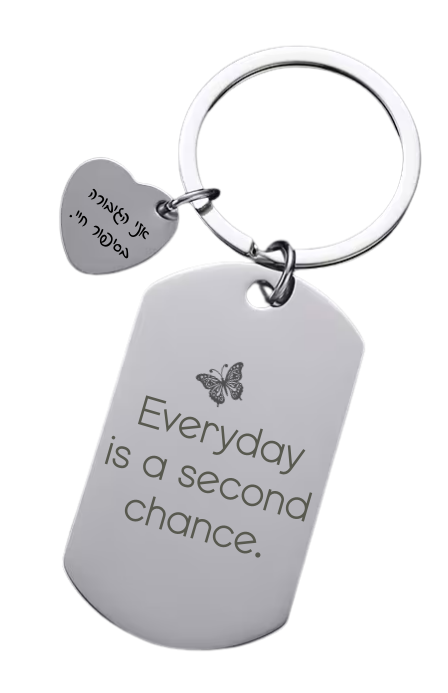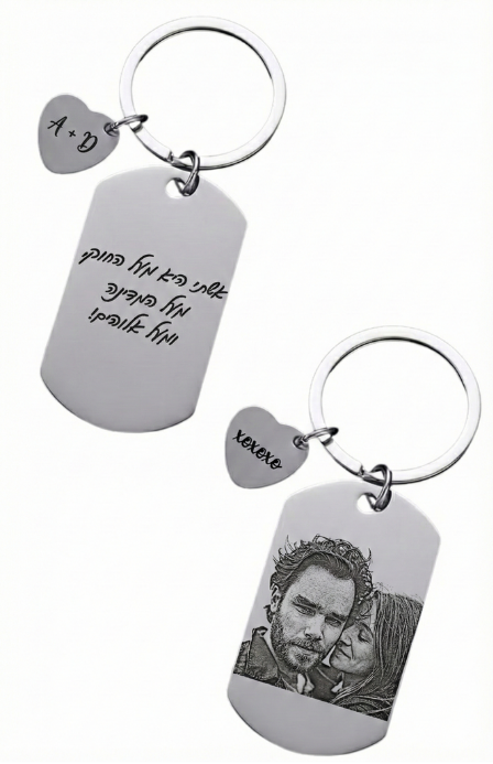 מחזיק מפתחות עם חריטה אישית – ניתן לחרוט משני הצדדים של המחזיק ושל הלב המצורף ללא תוספת עלות.