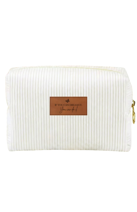 תיק הקורדורוי האהוב שלנו בעיצוב מינימליסטי ויוקרתי המשמש כנרתיק או כתיק לאיפור.